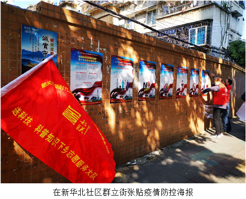 疫情就是命令,防控就是责任。面对当前防控新型冠状病毒感染肺炎的严峻斗争,送科技、送科普下乡志愿服务大队充分发挥“奉献、友爱、互助、进步”志愿服务精神,主动请战深入防控一线前沿,履行志愿者服务义务,结合自身资源以及优势,在各社区张贴防控抗疫宣传海报,宣传依法科学防控、禁止野生动物交易、勤洗手戴口罩等防控疫情注意事项。