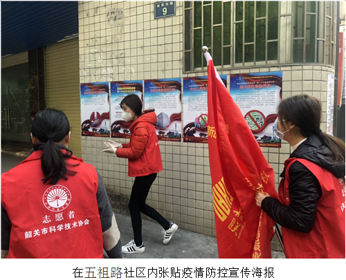 为加强新型冠状病毒感染的肺炎疫情防控工作,落实习近平总书记“广泛动员群众、组织群众、凝聚群众”、“紧紧依靠人民群众坚决打赢疫情防控阻击战”的重要指示精神。按市委、市政府和省科协的工作布置,韶关市送科技、送科普下乡志愿服务大队在2月份疫情攻坚战的关键时期,开展了“防控疫情志愿同行”志愿服务专项活动,在浈江区百旺社区,武江区新华北、冷水坑、五祖路社区等多个社区进行防控疫情文明实践活动。