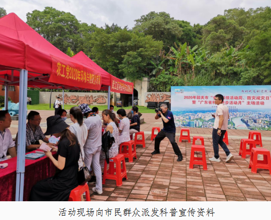 市职健所、韶关学院医学院和武江区科普志愿服务队等科普志愿者在现场解答群众的防灾减灾和疫情防控相关问题;活动现场还派发了有关应急自救和新冠肺炎疫情防控等相关知识的宣传资料,如《分餐不减爱,美味不打折》、《平安出游防踩踏应急救护需掌握》、《注意平安出行建设美满家庭》、《家庭应急36计》、《防灾避险如何自救》、《防灾减灾知多点》等小册子,现场工作人员还引导帮助群众下载科普中国APP,里面有丰富的应急自救知识以及与日常生活息息相关的科普小百科等多个栏目供群众阅读观看。