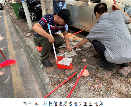 2019年9月2日,韶关市科协组织市科协、科技馆志愿服务队对巩卫责任保洁路段科技路开展了集中“三清”活动。市科协、市科技馆志愿者,拿着清洁工具,清理了科技路路面垃圾及卫生死角、处理了乱张贴的牛皮癣,环境卫生状况得到了明显改善。