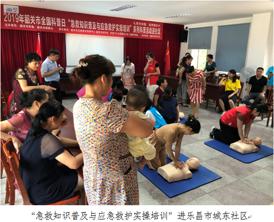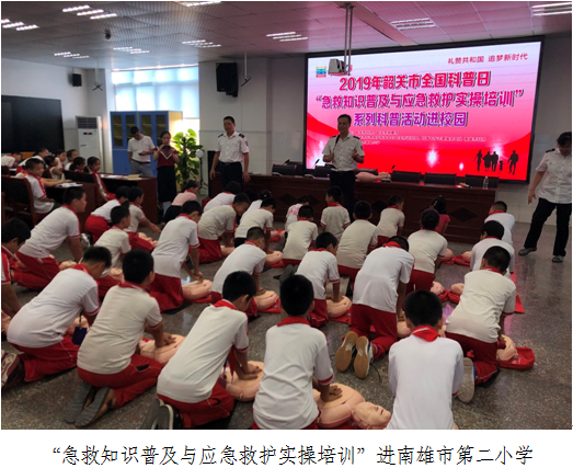 韶关市科协在全国科普日活动期间,联合市应急救护指挥中心在我市各县(市、区)开展2019年全国科普日“急救知识普及与应急救护实操培训”“六进”系列科普活动,参与本次活动的有我市广大教职工、中小学生、公务员、社区居民、军人等共计1300余人。培训现场轻松活跃,老师精心讲解,学生用心学习和演练。
