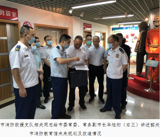 2020年5月26日下午,韶关市委常委、常务副市长华旭初带队到市科技馆调研安全生产及消防安全检查工作。市消防救援支队支队长葛长荣、政委黄珂,市科技局党组书记、局长张彬以及市自然资源局、市住建管理局、市财政局、武江区政府等单位分管领导陪同调研。