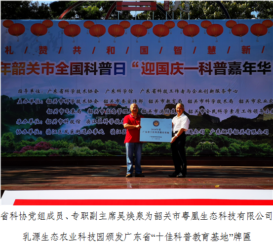 活动中,出席活动的领导还为获得由广东省“十佳科普教育基地”、2019年“韶关市科普教育基地”代表颁牌和为2019年广东省创意机器人韶关赛区比赛一等奖、2019年北京世界机器人大会——世界机器人大赛冠军挑战赛的获奖者进行了颁奖。