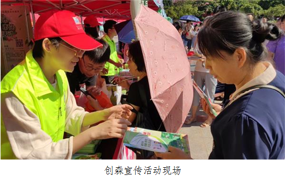 同时,与市林业局一起共同设置了“科普创森迎国庆 市树市花由您定”创森主题宣传活动专栏,向广大市民群众科普全域创建国家森林城市意义、传达城市绿色发展和生态文明建设理念,倡导“植绿、爱绿、护绿”的绿色生活方式,以及生态环保、低碳生活的生活态度,号召大家共建共享绿色生态环境。活动中,市科协、市创森办邀请广大市民朋友参与“市树市花”评选投票活动,让市民朋友们参与到城市绿色形象的评选中。现场派发创建国家森林城市、“市树市花”评选树种花卉图册、野生动物保护手册、野外用火管理条例宣传单等宣传资料上千份,同时赠送了大量印有创森logo的纸巾盒、小盆栽等精美礼品。
