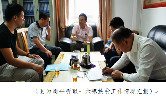 周平首先听取了一六镇分管扶贫工作的张庭柱副镇长汇报前段时间扶贫工作情况,对一六镇党委、政府采取的统筹规划、社会垫资、同步推进的危房改造经验表示赞赏,对去年实施的代种代养项目实现预期的目标表示肯定。一六镇建议要加大科普服务工作,提出帮助解决一六镇部分因眼疾致贫的问题,周平表示,近期要组织学会和科技、科普服务队到一六镇开展服务活动,进一步完善科普设施建设;我们负责联系省眼健康学会、市爱尔眼科的专家来一六镇开展义诊服务,请扶贫办尽快把相关的情况统计出来报市科协。