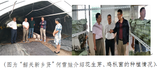 周平随后和省委宣传部驻新丰县马头镇大陂村第一书记张涛到一六镇下社村调研美丽乡村建设和花生芽、鸡枞菌的种植情况,详细了解下社村的规划、建设、投入、农民的收入等情况,询问花生芽、鸡皮菌的种植技术、产量、产值、销售等情况,这些扶贫项目吸引了第一书记张涛,提出了学习和引进的需求,最后市科协促成了“韶关新乡贤”何雪娃与大陂村初步合作,何雪娃也愿意为大陂村村民免费培训。