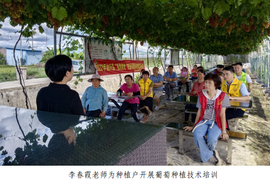 活动中,县科协人员陪同韶关学院硕士生导师李春霞到市级科普教育基地朗时农场开展葡萄设施栽培技术培训,并邀请周边葡萄种植户一起参加培训,为种植户提供现场技术指导。活动中,李春霞老师为参训人员详细讲解了葡萄种植病虫害防控技术及施肥注意事项,耐心为参训人员答疑解惑,活动受到一致好评。