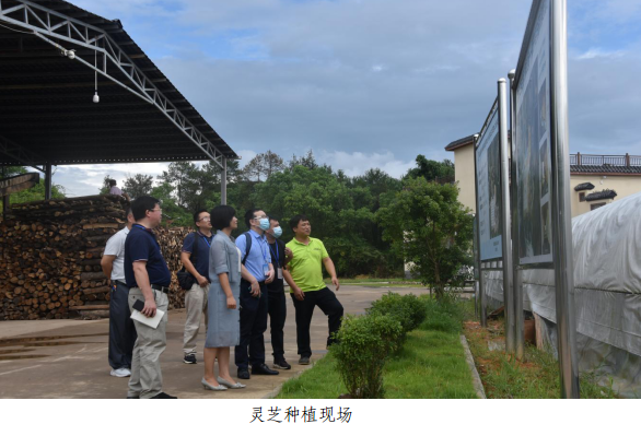 在灵芝基地种植现场,省专家人才组在人才驿站引进的本土专家人才、时任韶关市三宝生物科技有限公司技术总监熊桂林的带领下来到了灵芝种植大棚,现场查看了灵芝种植生长情况。熊桂林不仅就目前灵芝等食用菌的种植规模、生长情况做了全面细致的讲解,还提出了食用菌在生长过程中遇到的病虫困扰、技术攻关难题等疑难杂症。专家组也对此作出了答复。