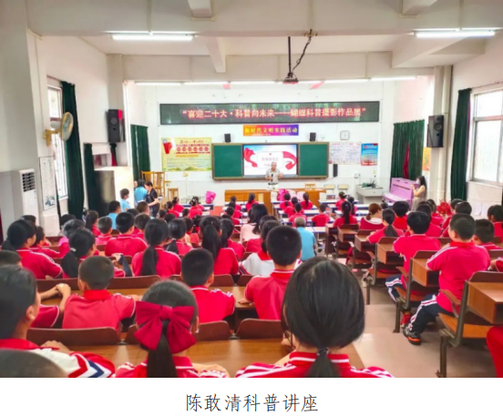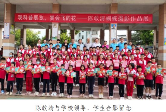 在科普讲座上,中国科普作家协会会员、广东省昆虫摄影家协会会长陈敢清先生,向学校20位留守儿童和学校阅览室捐赠了他编著一批科普书籍;同时,以《会飞的花》为题,用通俗易懂、与学生互动的方式,讲述了如何识别蝴蝶、蝴蝶的种类、蝴蝶的习性和一生的变化,以及蝴蝶与科技之间的联系等知识,给同学们上了一堂精彩的科普课,使同学们受到了一次形象生动的生态科普教育。