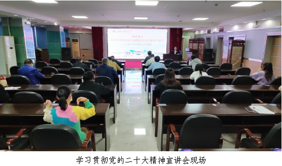 为深入学习宣传贯彻党的二十大精神,11月24日上午,韶关市科协举行学习贯彻党的二十大精神宣讲会,市委宣讲团成员、广东南岭干部学院副院长陈伦盛应邀作专题宣讲报告,市科协机关(市科技馆)全体干部职工参加会议。