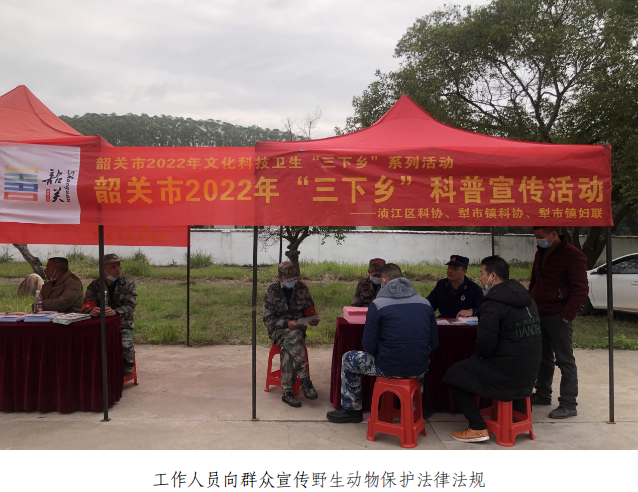 为引导社会公众广泛关注和参与野生动物保护相关工作,倡导广大群众遵守法律,共同保护野生动物的生存环境,12月9日上午,由韶关市浈江区科协、韶关市浈江区自然资源局、犁市镇科协等单位联合举办的“保护野生动物,建设绿美广东”主题宣传活动在犁市镇黄竹村开展。
