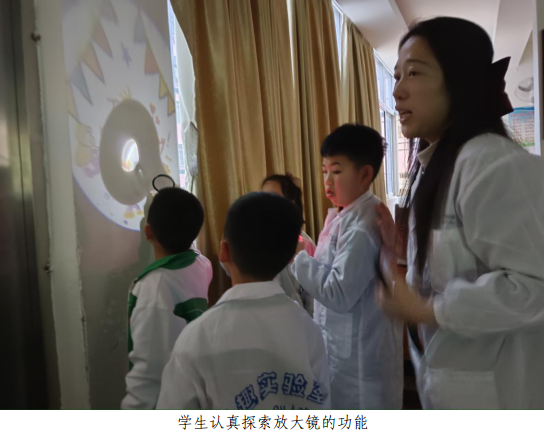 在以“疯狂放大镜”为主题的《STEM科学实验课》上,学生在科学老师的带领下,用多种趣味性游戏的方式探索放大镜,充分调动了学生的学习积极性,使他们亲身体会到科技的神奇魅力。科学实验课程以“生活处处有科学,科学时时为生活”为理念,通过一个个贴近生活而又趣味十足的小实验,让学生亲手揭开科学的神秘面纱,探索科学世界中的奥秘,提高学生的科学素养。