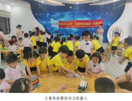 活动现场,科普志愿者通过人形机器人展示、集控版机器人Alpha1S表演、无人机飞行表演、“神秘的空气大炮”科学实验等活动,让师生欣赏到高科技的神奇魅力,现场不时发出惊叹和欢呼声。精彩的科学表演结束后,儿童们在科普志愿者的指导下,亲自动手操控动力机器人和无人机,近距离体验有趣的科技成果和科创产品,使现场活动氛围达到高潮。