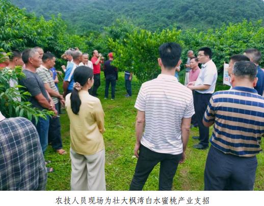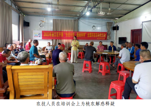 5月20-31日是主题为“热爱科学、崇尚科学”全国科技活动周。5月22日,曲江区科协联合曲江区农业农村局、枫湾镇人民政府组织农技人员走进枫湾镇白水村委黄泥坳果园,开展2023年全国科技活动周暨送科技下乡活动,为白水蜜桃种植技术攻坚,助力曲江乡村振兴。