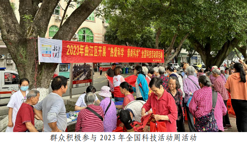 5月25日,在“全国科技工作者日”来临之际,曲江区科协联合区卫健局、区工信局、区科技馆等部门的科技工作者,在城区沿提二路河边公园开展了以“热爱科学 崇尚科学”为主题的2023年全国科技活动周科普宣传活动,曲江区委常委、统战部部长肖绍托等领导参加。