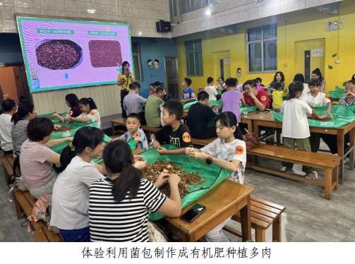在五马寨科普教育基地,大家参观了食用菌种植大棚,了解食用菌栽培方式;在蘑菇课堂上,大家通过观看视频了解毒蘑菇的相关知识,并在家长陪同下,利用菌包制作有机肥种植多肉。