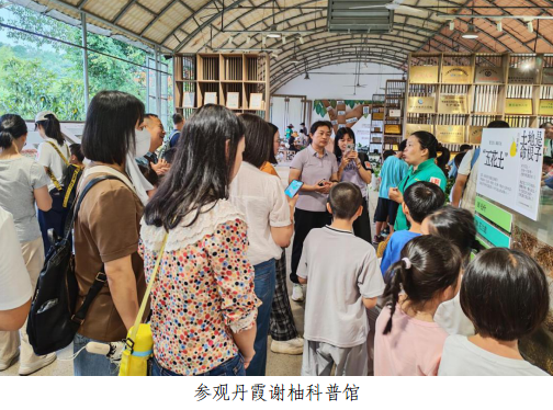 在金喆园科普教育基地,大家参观了丹霞谢柚科普馆、丹霞谢柚种植基地和航天种子种植基地,并体验了蜜柚采摘。
