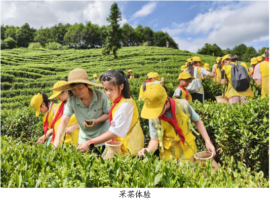 活动中,学生们在经验丰富的茶农带领下走进茶园,学习“一芽两叶”的采摘手法,亲手体验鲜叶采摘的乐趣。在制茶环节,学生们戴上手套在指导下体验铁锅炒茶,见证茶叶从鲜叶到成品的蜕变。在擂茶体验环节,茶艺师为大家介绍了客家擂茶的历史和制作技艺,学生们轮流手持擂杵研磨茶叶、花生、芝麻等原料,在欢声笑语中感受传统茶文化的魅力。