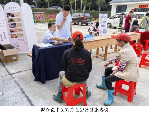 活动设置了中医理疗、便民维修、政策咨询及特色美食品鉴等多个区域。在中医理疗区,科普志愿者为居民提供健康咨询和推拿服务,普及常见病防治及中医药保健知识;便民服务区则提供义剪、小家电维修服务,满足群众的“小修小补”需求;政策宣传点通过发放科普折页、现场讲解等方式,向群众介绍低碳生活、防灾避险、卫生防疫等实用信息。现场还提供了中药茶饮供群众品尝,吸引众多村民积极参与和体验。