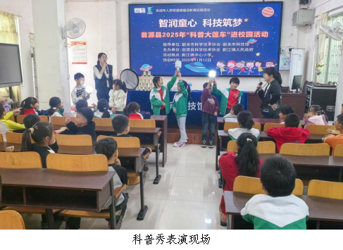 为进一步加强青少年科学知识普及教育,弘扬科学精神,培养青少年科技创新思维,11月12日上午,由翁源县科协主办的“智润童心 科技筑梦”暨“科普大篷车”进校园活动在新江镇中心小学展开,为1250名师生带来一场集趣味性与知识性于一体的“科技盛宴”。