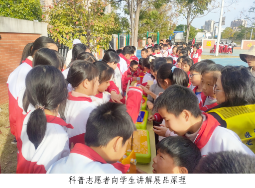 活动中,科普志愿者用浅显易懂的语言向学生讲解“虹吸现象”“五彩万花筒”“永动机神话”“磁与铁”“穿墙而过”“声波看得见”“沉浮子实验”等展品原理,并现场演示体验方法。现场气氛热烈,内容丰富多样,每个展台前都围满好奇的学生,他们在实践中感受科技的魅力,在互动中激发创新的火花。