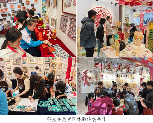 活动设有美育作品展和科技体验展。美育展展出了各式各样富有年味特色的作品,如融合春节元素的漆染绘本、展现吉祥图案的纸浆画与剪纸艺术等,让群众在传统手作中感受新春的喜悦。科技展则设有机器人表演、编程体验、VR互动、3D打印及趣味科学实验等项目,让大家在趣味中感受科技魅力。现场还设置了“集章兑礼”活动,群众可在各个展区打卡集章,兑换特色文创礼品;爱心义卖区则展出师生创作的美术与科技小作品,所有义卖所得将全部用于帮扶辖区贫困学生,传递爱心与温暖。
