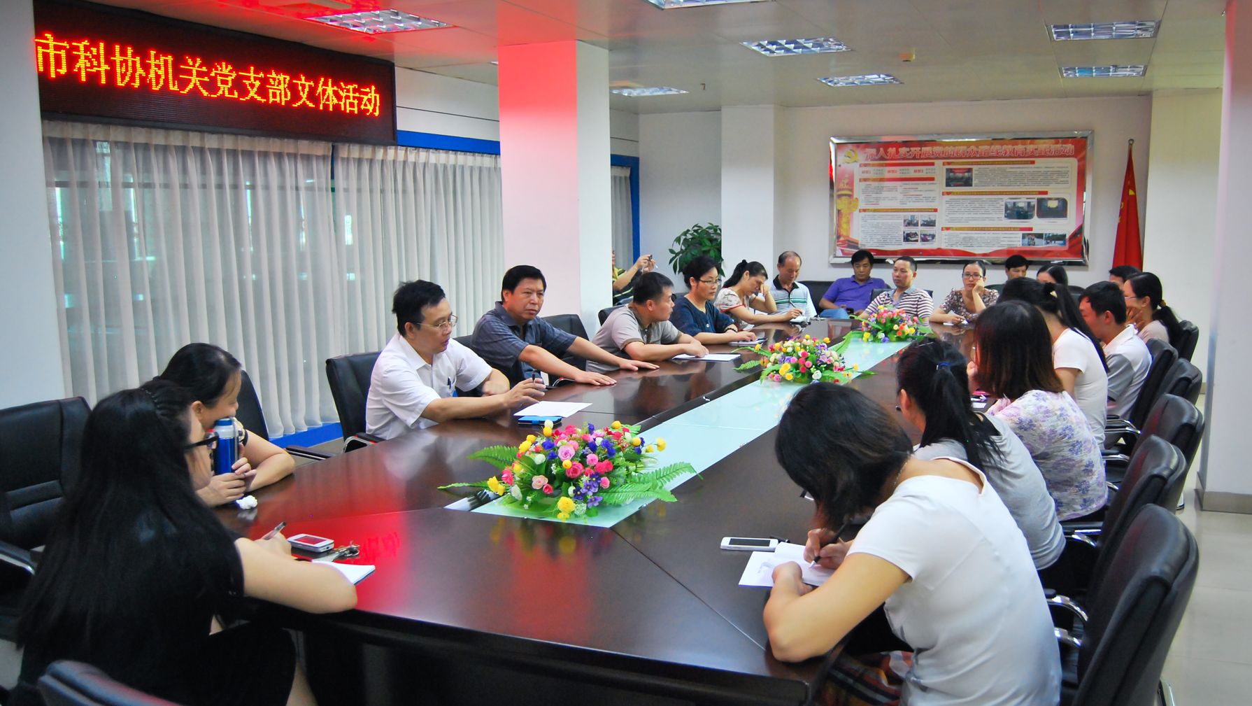 市科协党组书记郑适主席、市科协副主席罗金锋、周平主持市科协机关党支部文体活动会议,并发表讲话