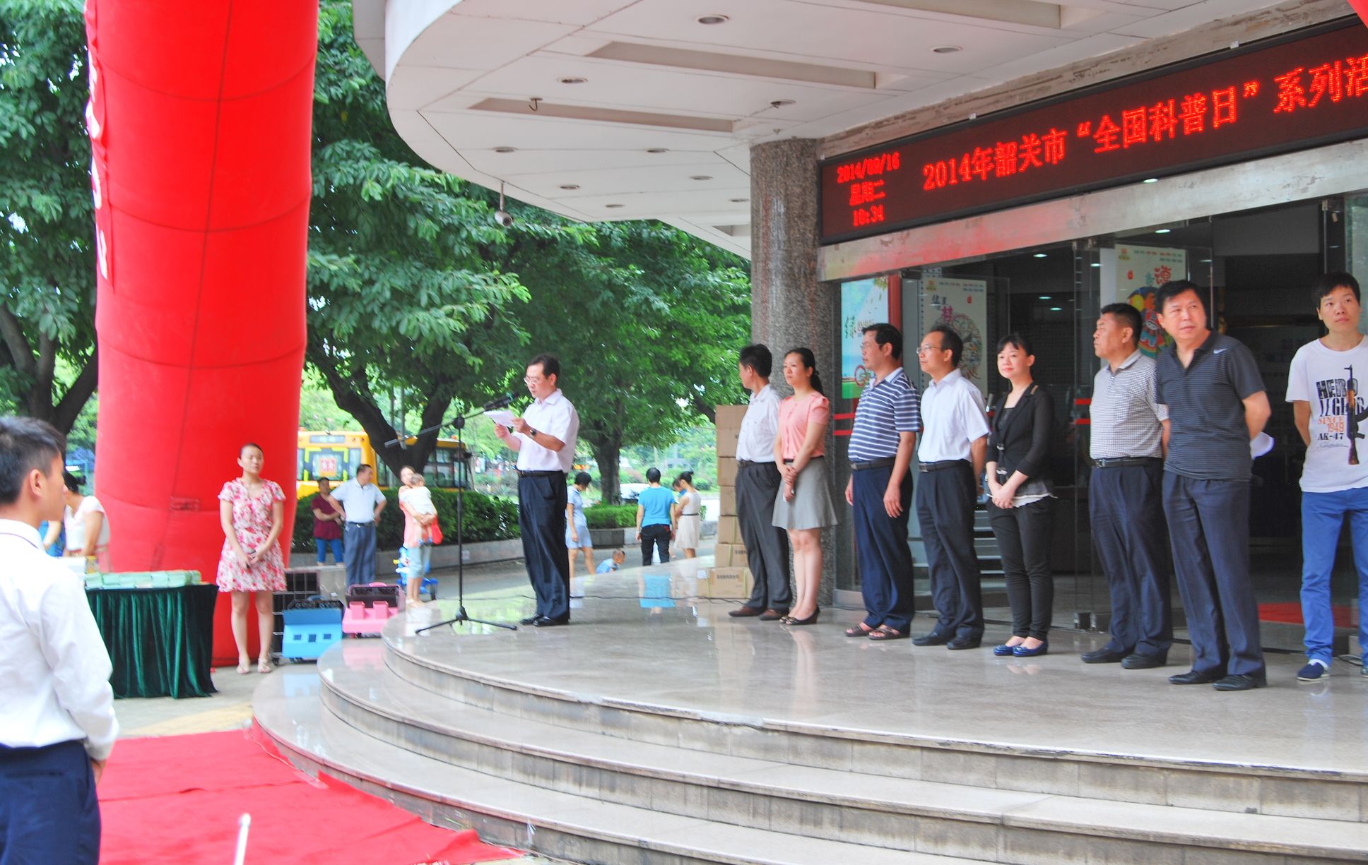 启动仪式上,市科协党组书记郑适主席主持,市政府办公室副主任赵旬发表讲话,2014年全国科普日以“创新发展,全民行动”这一主题,引导全体公民树立科学思想、崇尚科学精神、提高科学素质,围绕“政府推动,全民参与,提升素质,促进和谐”指导方针,突出公民科学素质建设的重点内容,坚持以重点人群科学素质行动带动全民科学素质的整体提高。