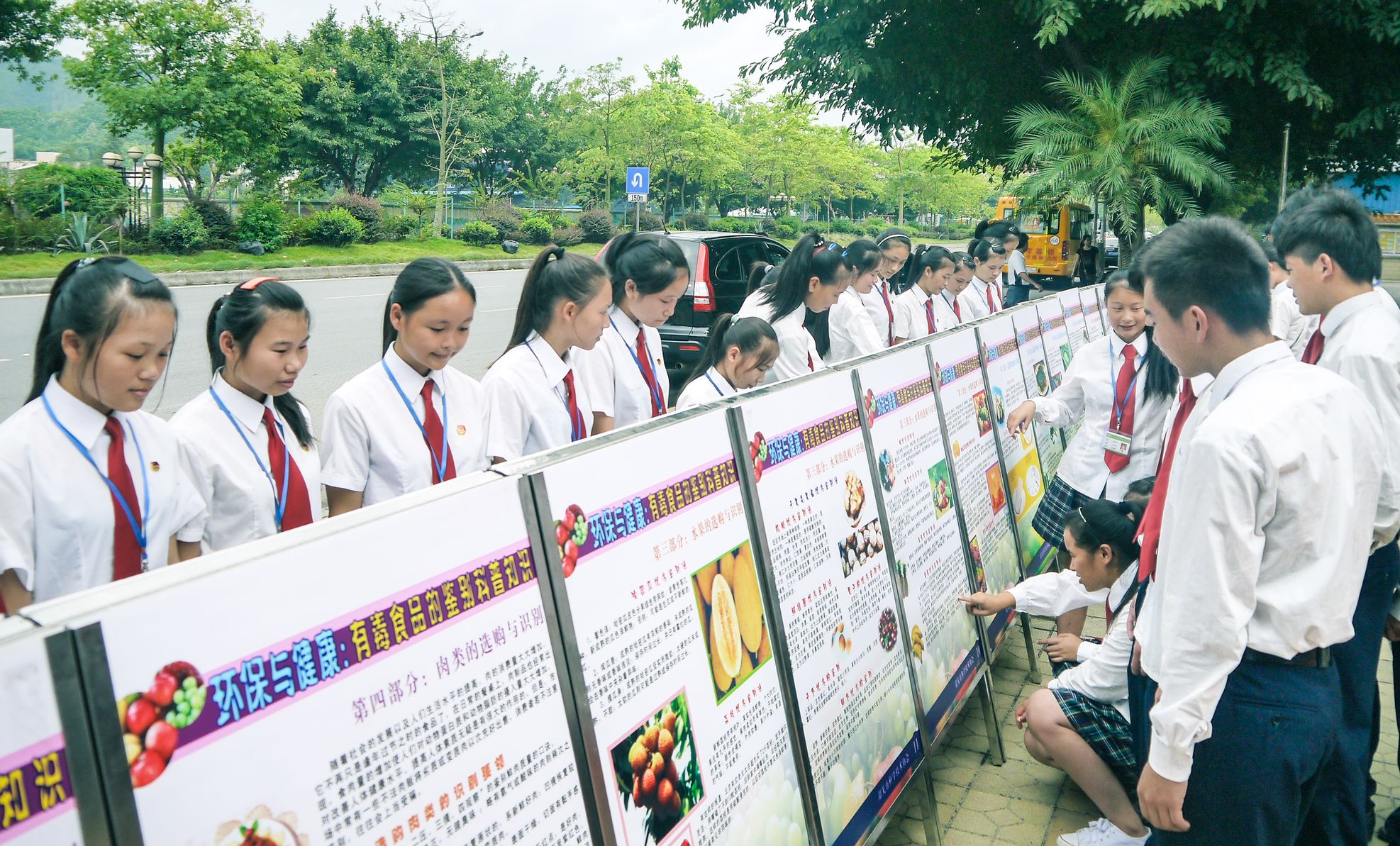同学们正在仔细浏览科普图展