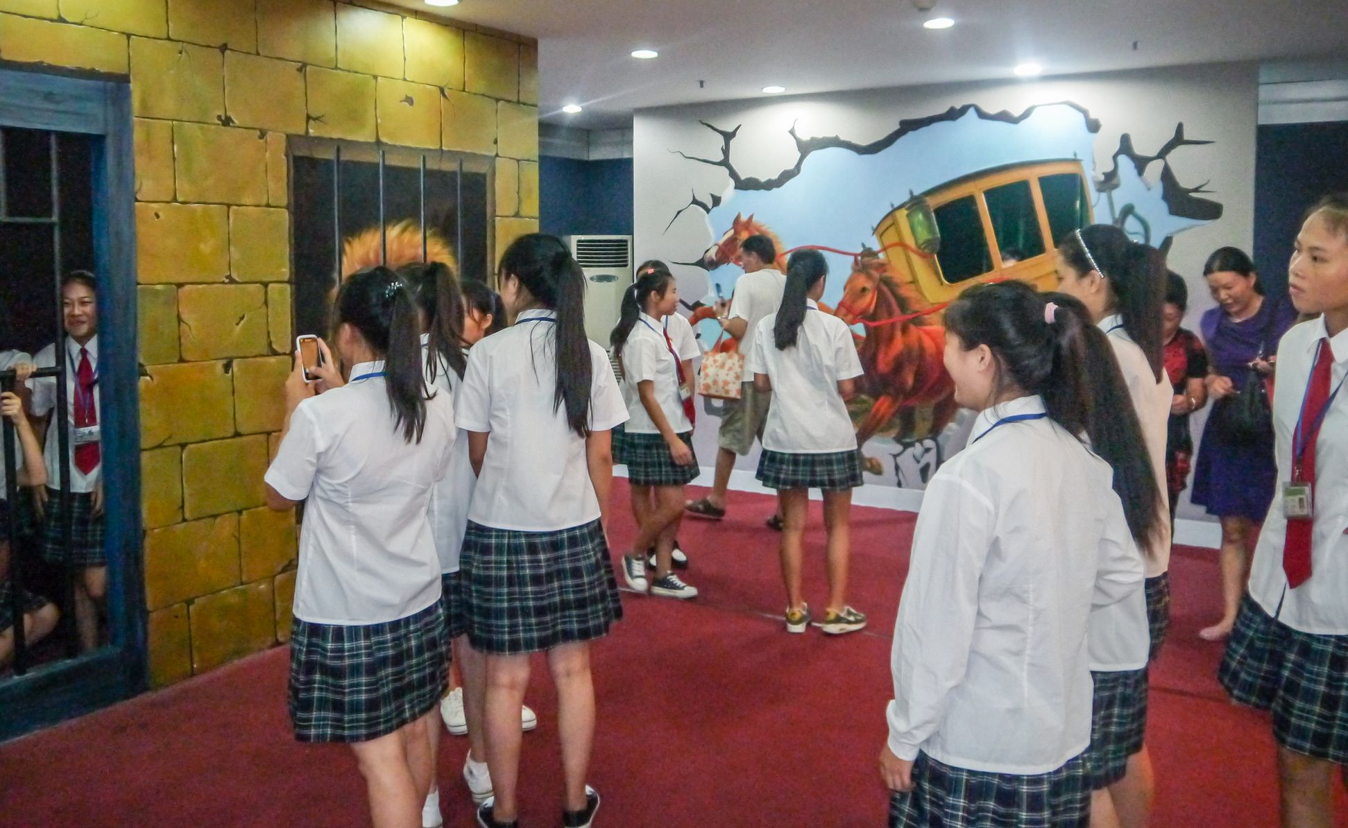 嘉宾领导及同学们在裸眼3D体验馆里拍照留影