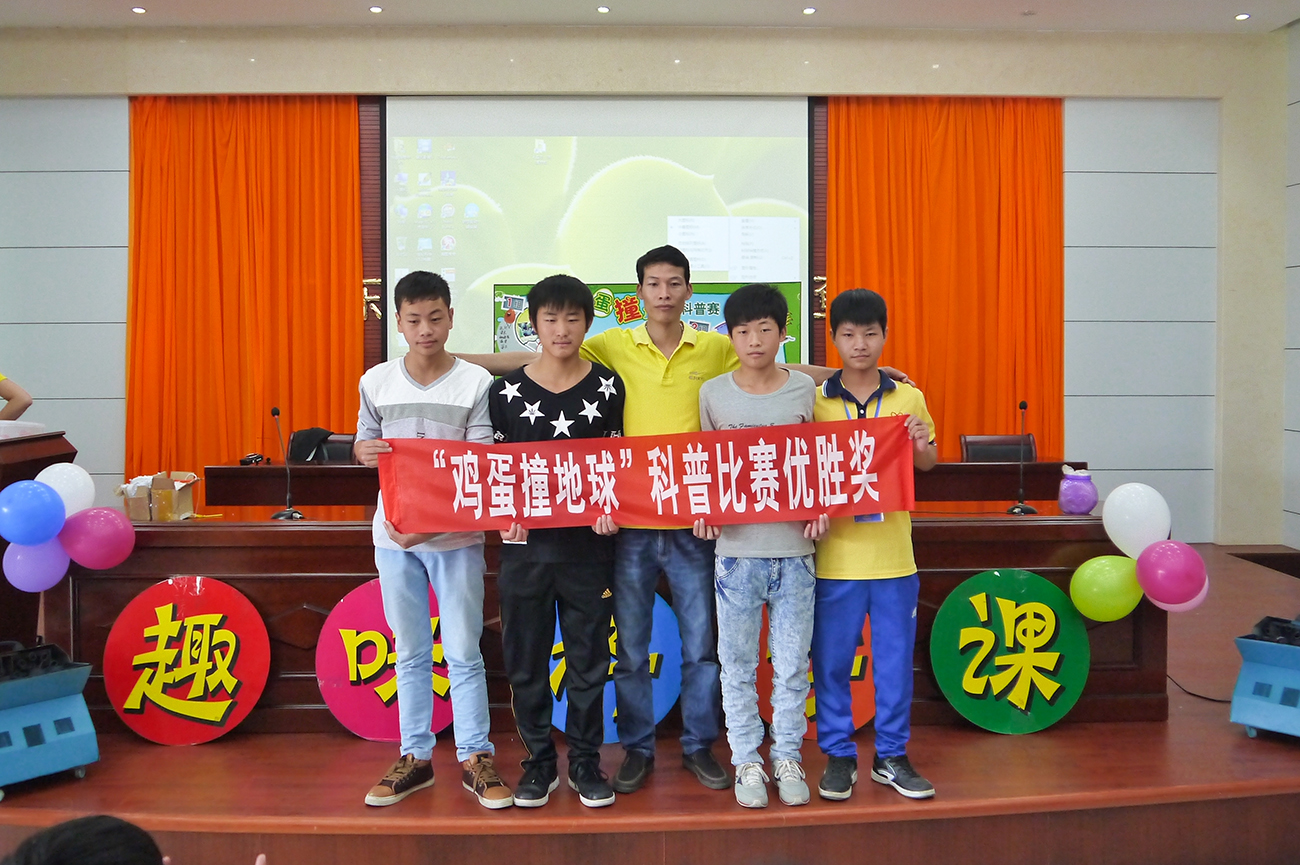 同学们在科技辅导员的指导下制作“鸡蛋撞地球”的实验装置