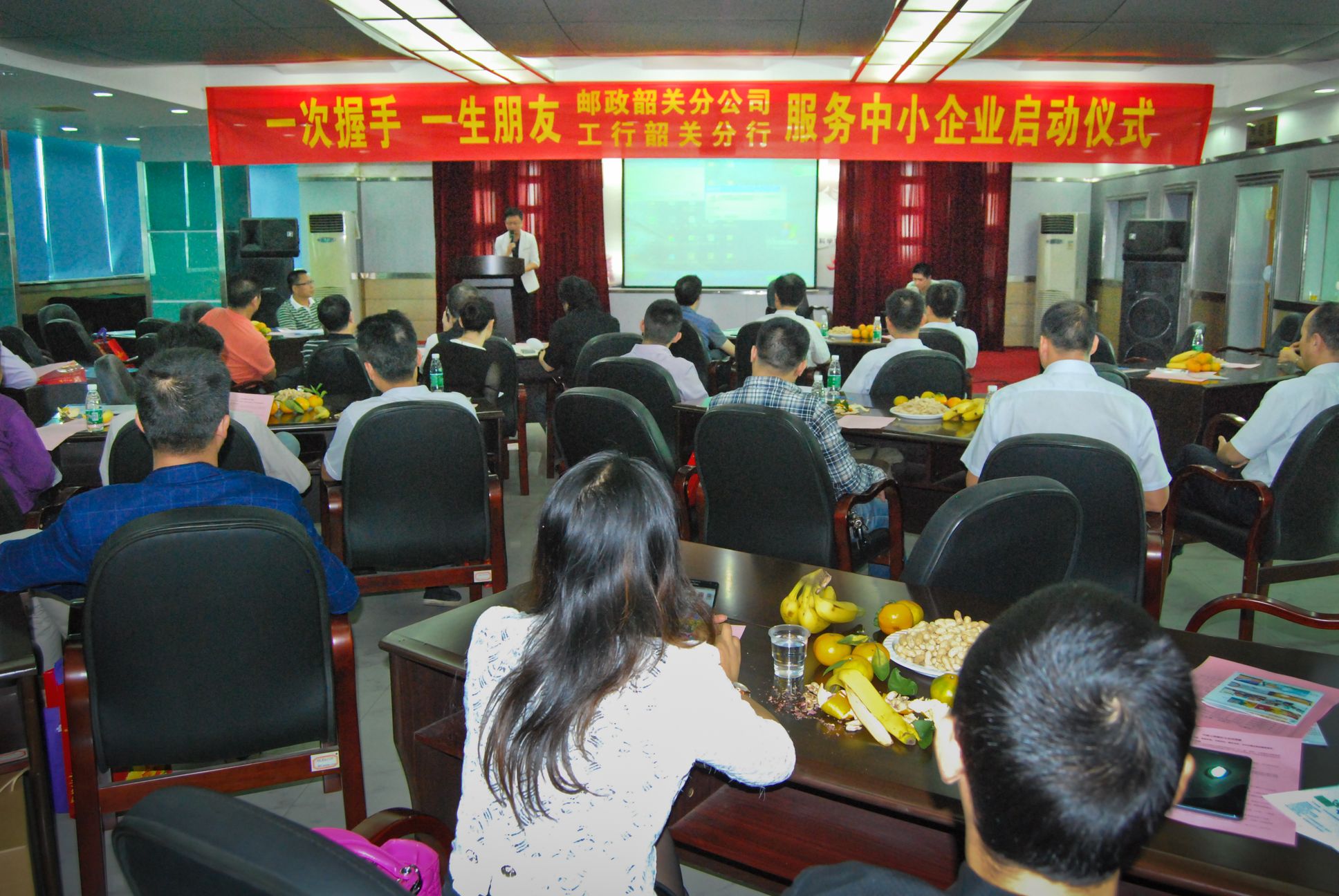 2014年10月22日,由韶关市中小企业局、市科技馆、市邮政公司、市工商银行、广发证券联合举办的2014年韶关市“一次握手、一生朋友”科普活动在我馆学术报告厅召开。此次活动的目的是通过搭建邮政、银行、服务机构与中小微企业对接合作平台,助推我市中小微企业健康发展。