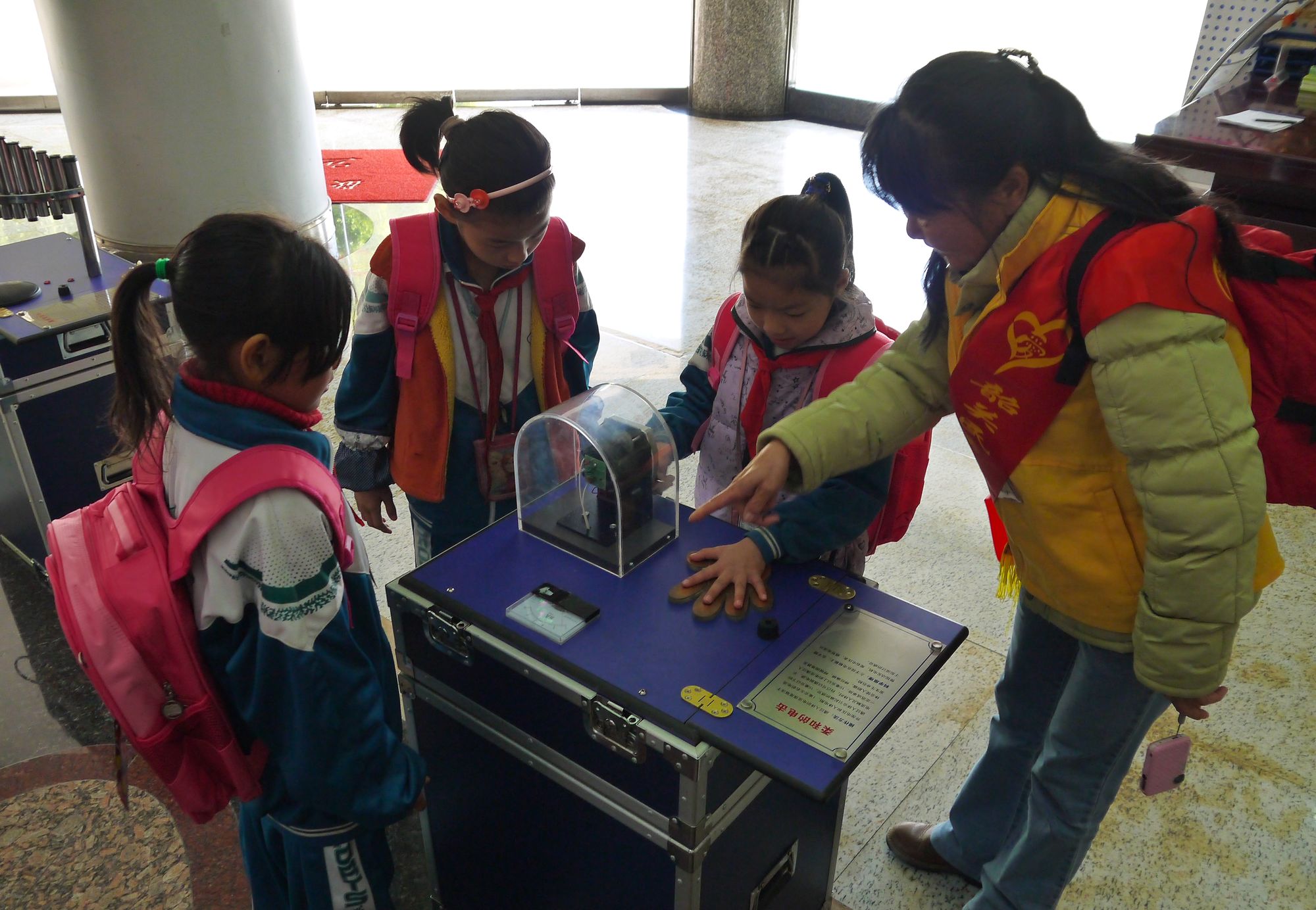 留守儿童正在体验流动车载展品