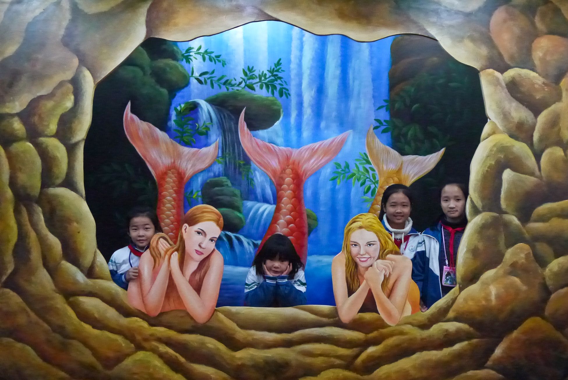 留守儿童在裸眼3D画前合影