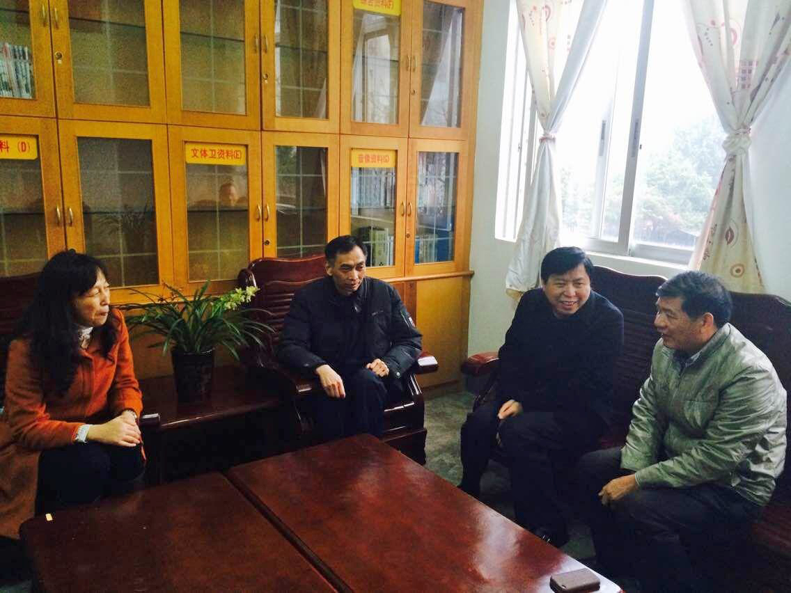 韶关市科协党组书记、主席郑适与南雄科协主席吴美华、黎灿小学曾凡辉校长交流
