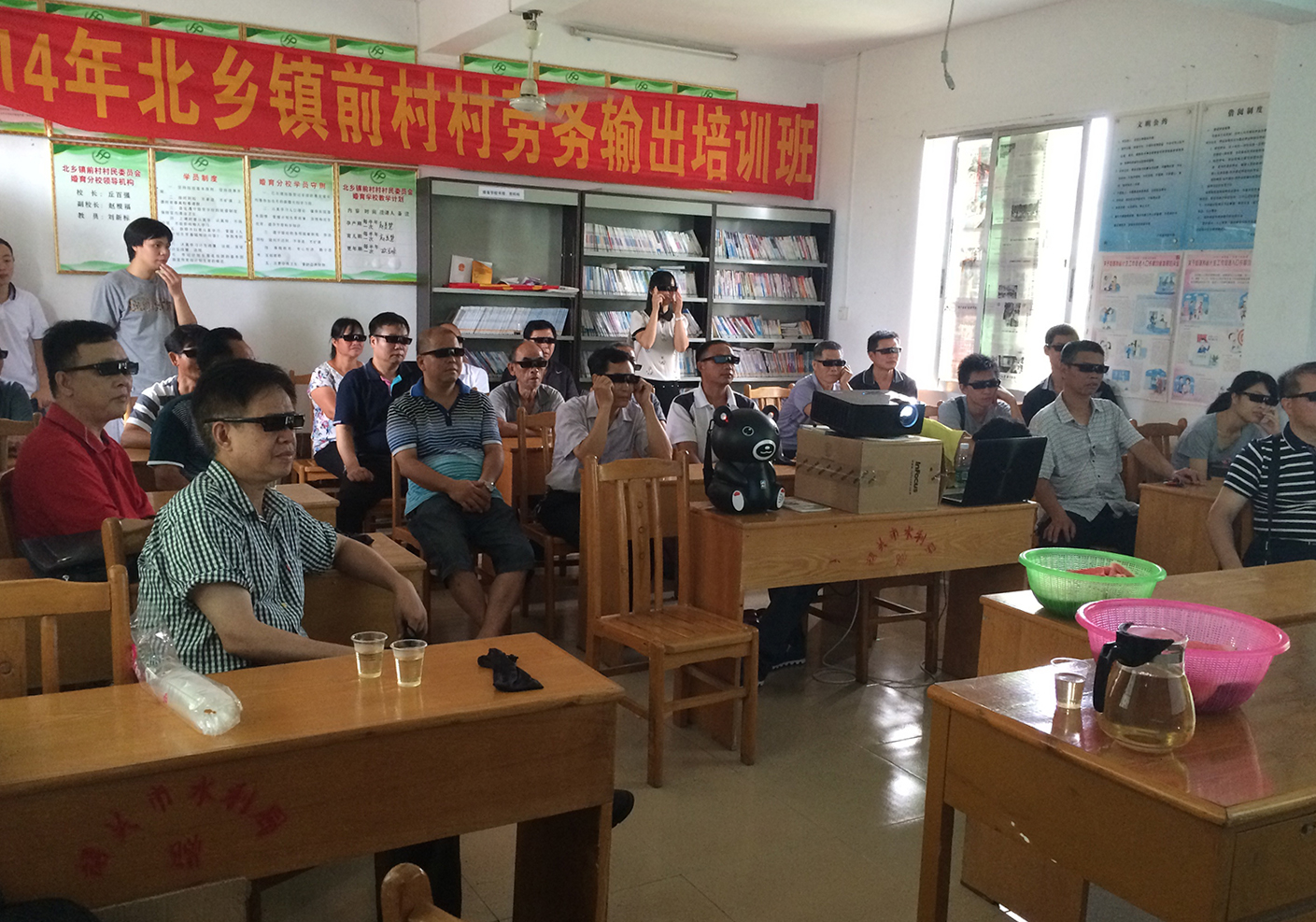 基层党员干部在观看3D电影