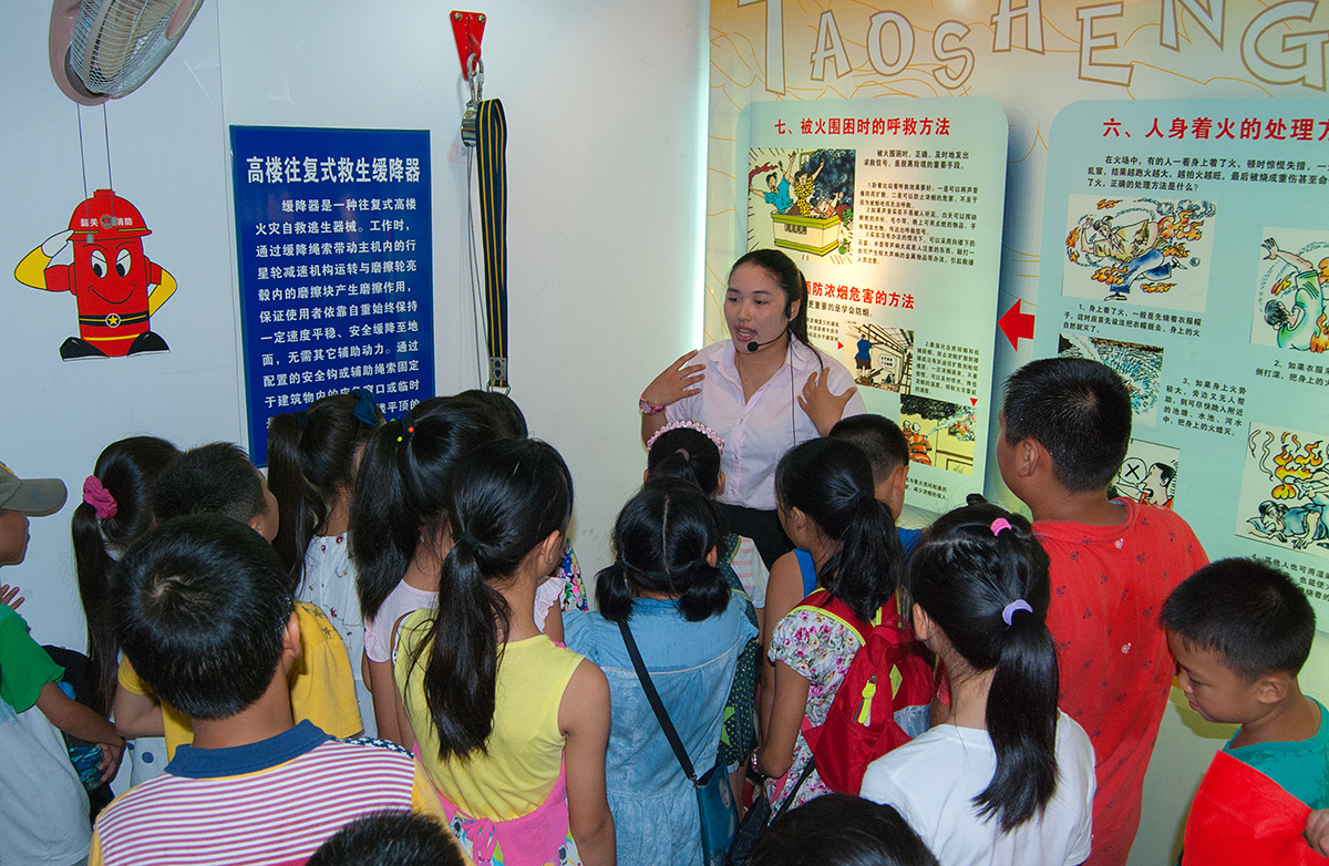 辅导员为同学们讲解高楼救生缓降器的使用方法