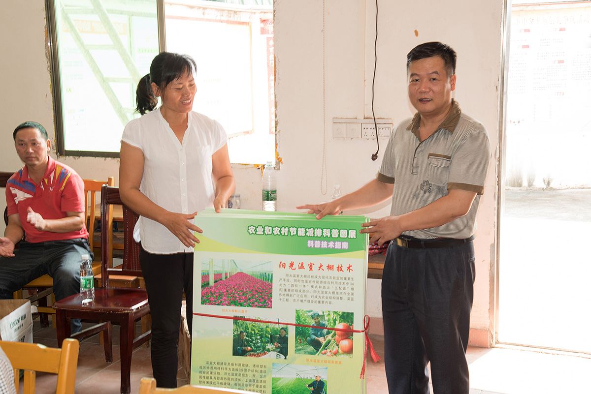 市科协副主席罗金峰为仁化县石塘镇下中坌村村委赠送科普图版