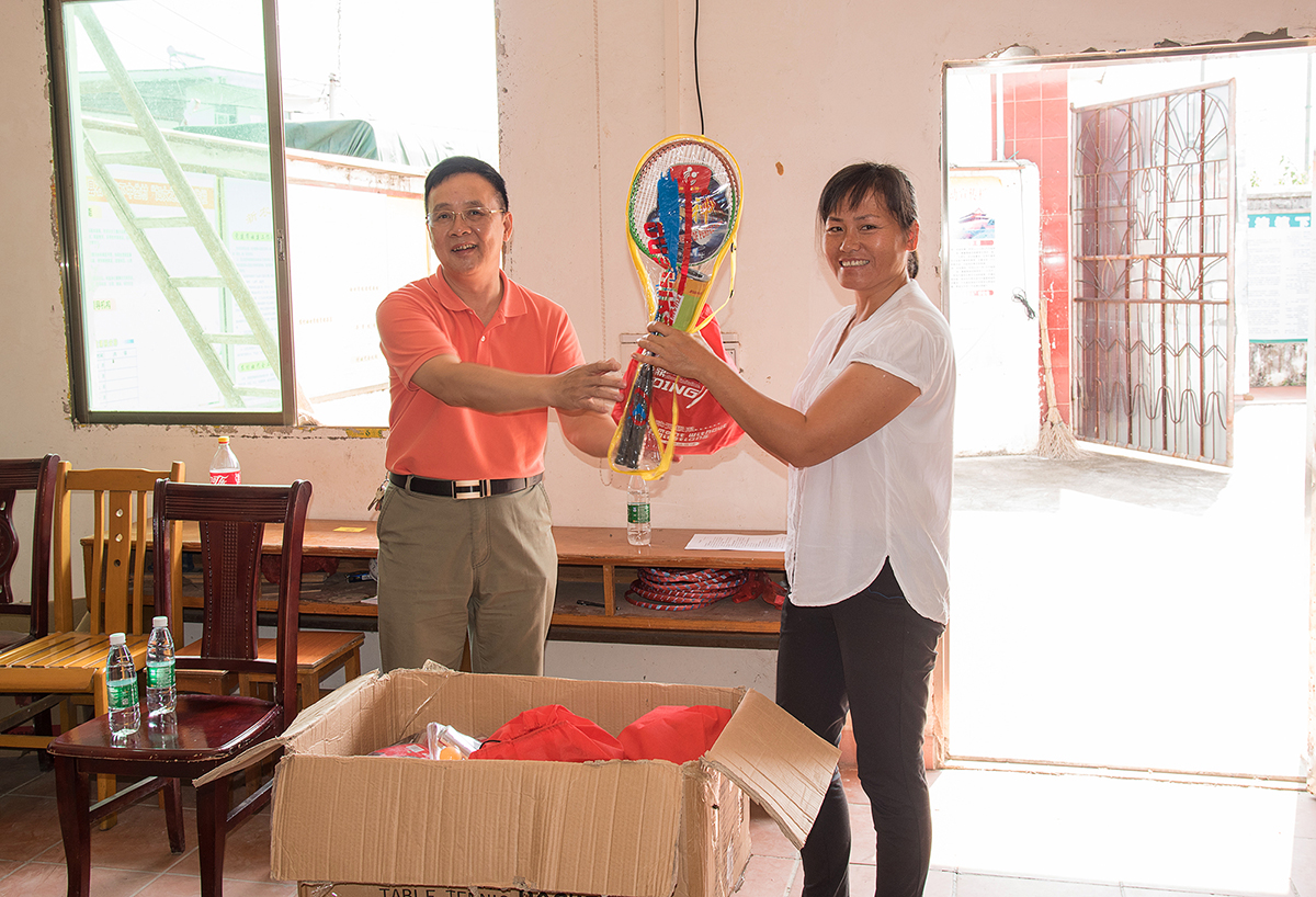 市科协副主席周平为仁化县石塘镇下中坌村村委赠送文体用品