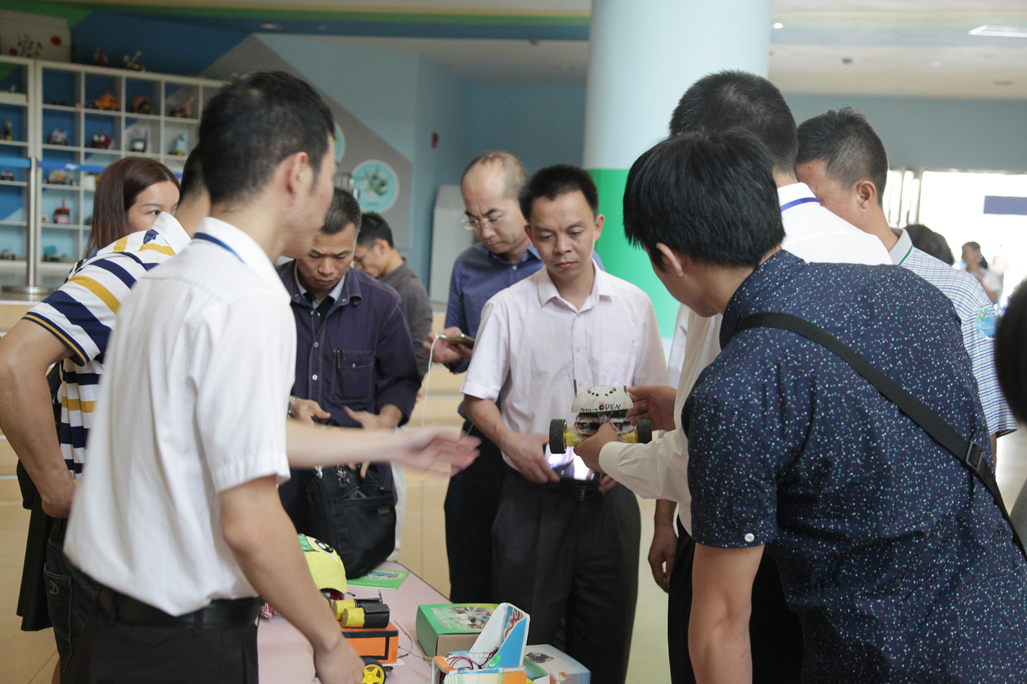 参会代表参观创意机器人成品