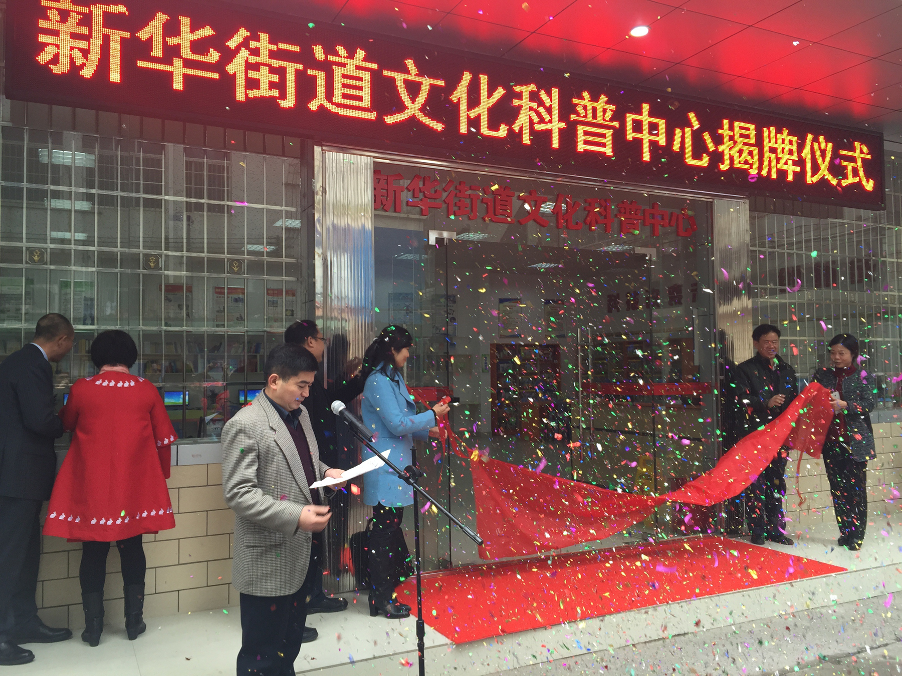 2015年12月29日,我馆受新华街道办邀请参加了“科普进社区暨新华街道文化科普中心揭牌仪式”活动。韶关市科协党组成员、副调研员陈添辉、武江区副区长王敏雯、韶关市科协科普部部长李崇文、武江区经信局局长、科协主席张思健以及相关部门领导、单位参加了活动。