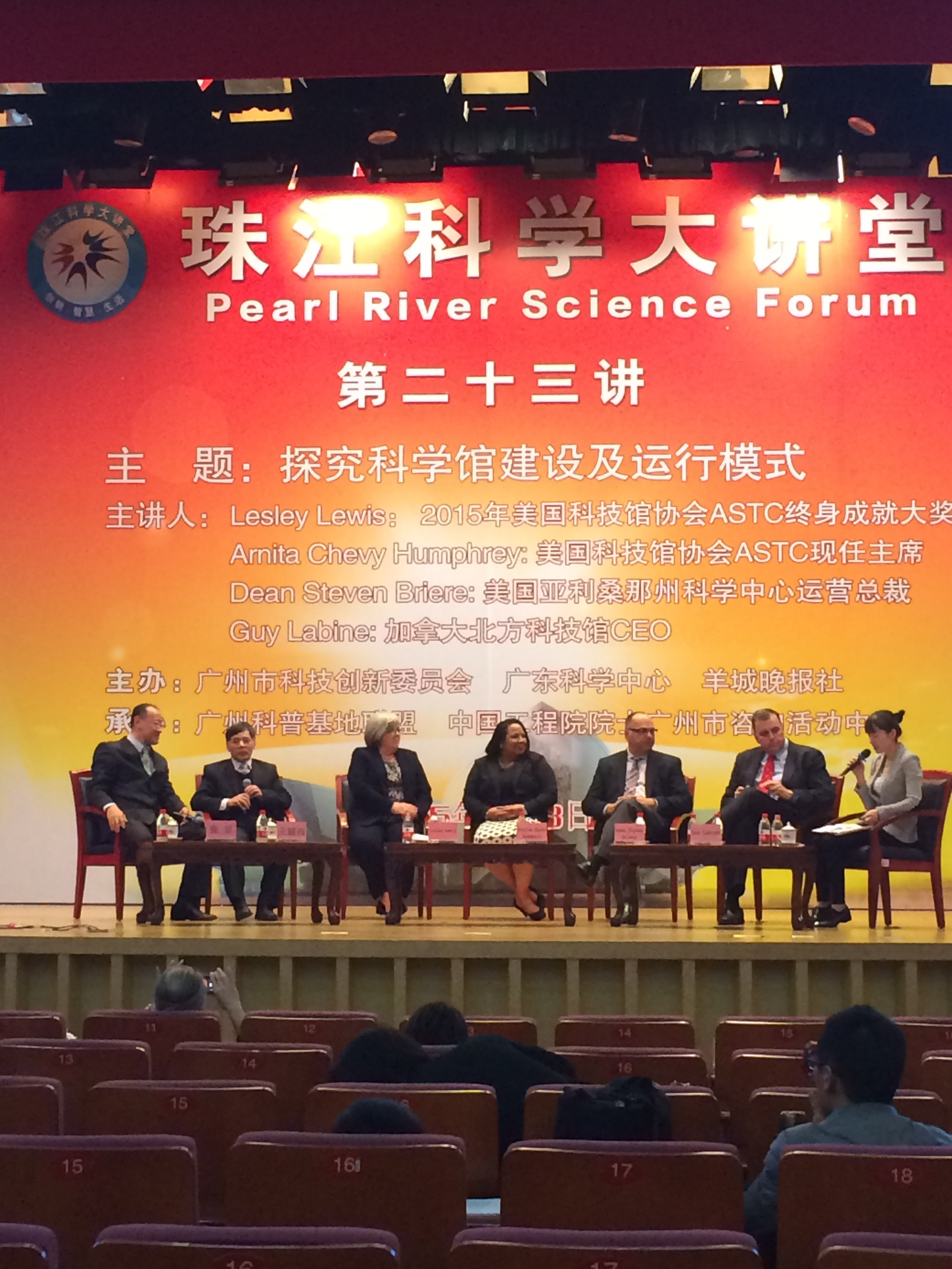 2016年1月8日,我馆副馆长王芳和宣教部部长杨丽到广东科学馆参加了珠江科学大讲堂第23期《探究科学馆建设及运行模式》专题讲座。此次讲座邀请了科学馆方面世界领先的专家:2015年美国科技馆协会ASTC终身成就大奖Lesley Lewis,美国科技馆协会ASTC主席位Arnita Chevy Humphrey,美国亚利桑那州科学中心科学中心运营总裁Dean Steven Briere,加拿大北方科学馆CEO Guy Labine。他们为我们带来他们在科学馆建设运营方面的丰富经验,也给我们带来他们在建设科学馆方面的一些先进的理念。