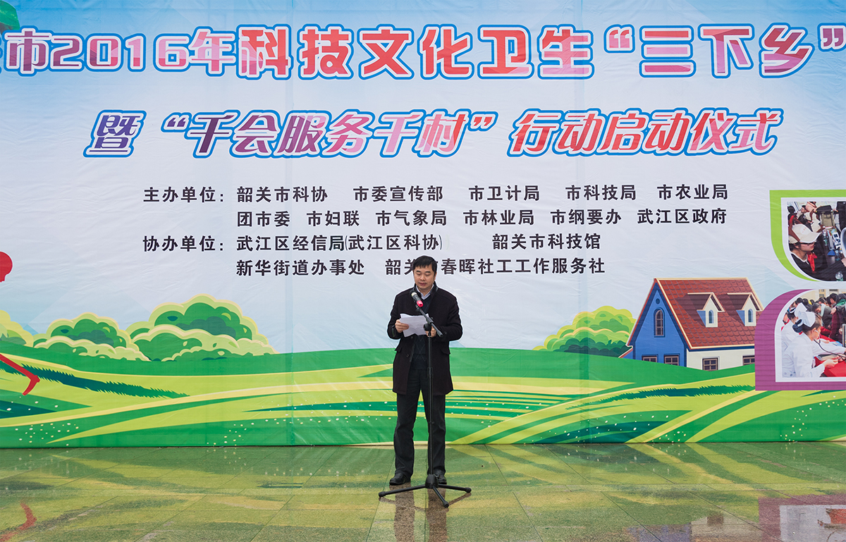 为进一步宣传《中华人民共和国科学技术普及法》,深入实施《全民科学素质行动纲要》,提高我市公民全民科学素质,2016年3月17日,韶关市2016年科技文化卫生“三下乡”活动暨“千会服务千村”行动启动仪式在武江区西河全民健身广场隆重举行。