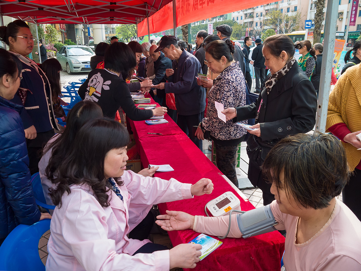 为社区居民发放科普知识宣传资料与健康义诊