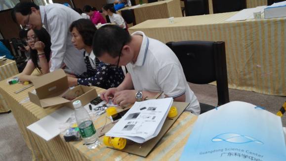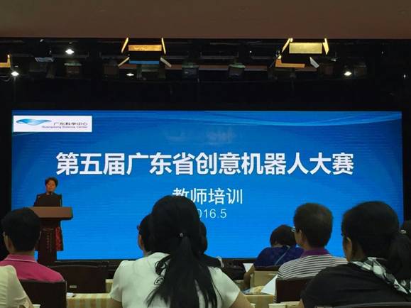 2016年5月11日至12日,韶关市科技馆馆员王会光、林赞和韶关市武江区田家炳小学、韶关市红星小学、浈江区实验学校、韶关市和平路小学、乳源第一小学、南雄市黎灿学校等六所学校的骨干教师赴广东科学中心参加第五届广东省创意机器人大赛的赛前辅导教师培训。老师们学习了基础型工业机器人的电路设计和编程型工业机器人编程技术,并取得相关培训证书。为今年组织学生参加第五届广东省创意机器人大赛做好准备。
