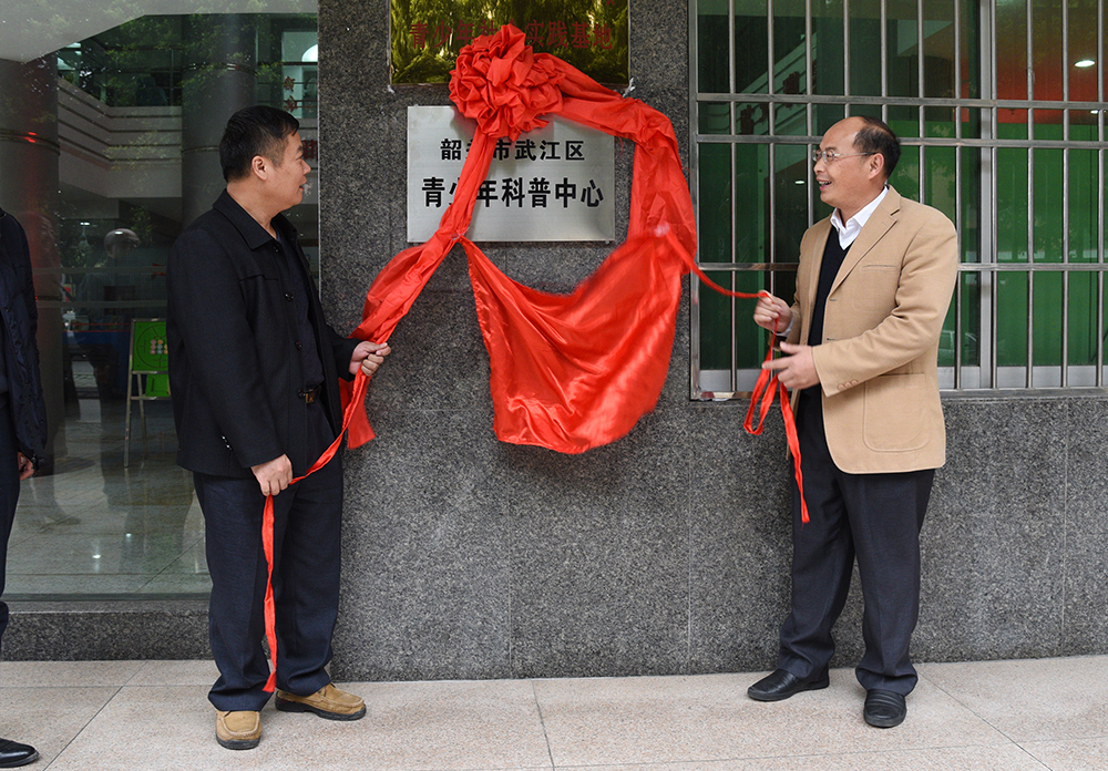 韶关市科协党组书记、副主席罗金锋(左),武江区政协副主席、教育局局长曹华龙(右)、揭牌仪式