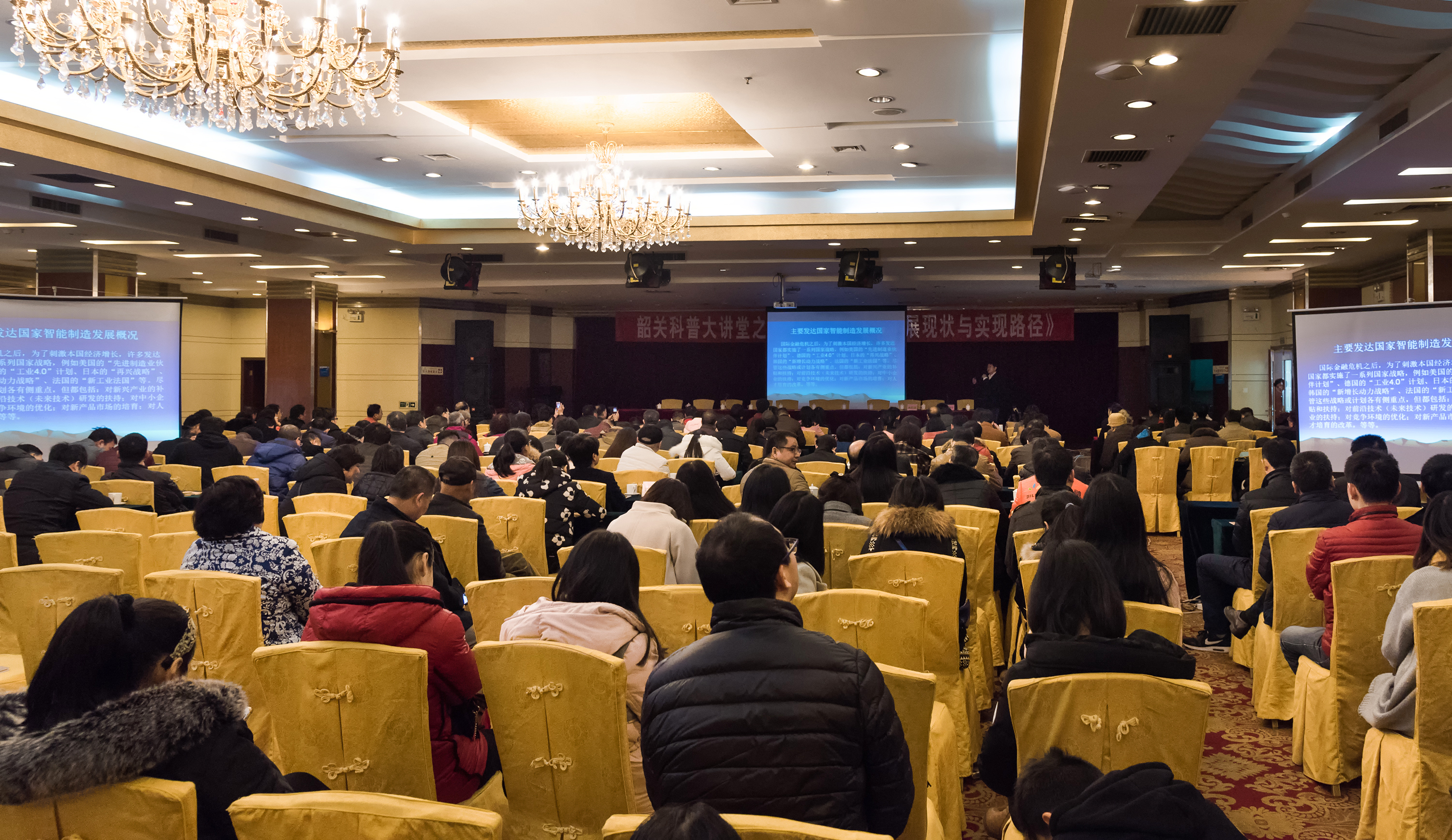 2017年1月14日,由市科协、市全民科学素质工作领导小组、市九三学社韶关市委员会、市机械行业协会主办,韶关市科技馆、韶关市科创科普服务中心承办的《韶关科普大讲堂》2017年第一讲“智能制造的发展现状与实现路径”在湖心宾馆举行。