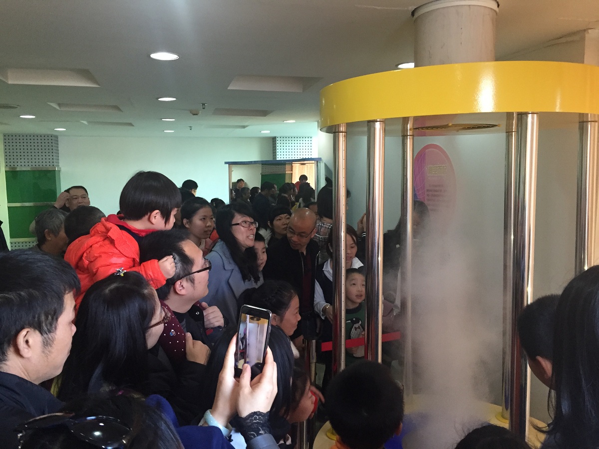 师生们观看趣味科学馆内的“模拟龙卷风”