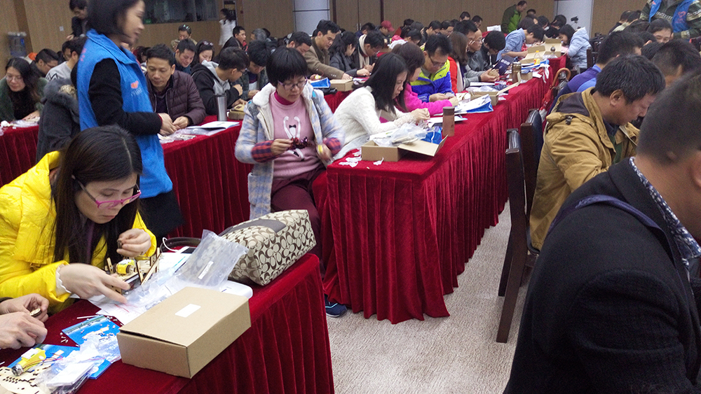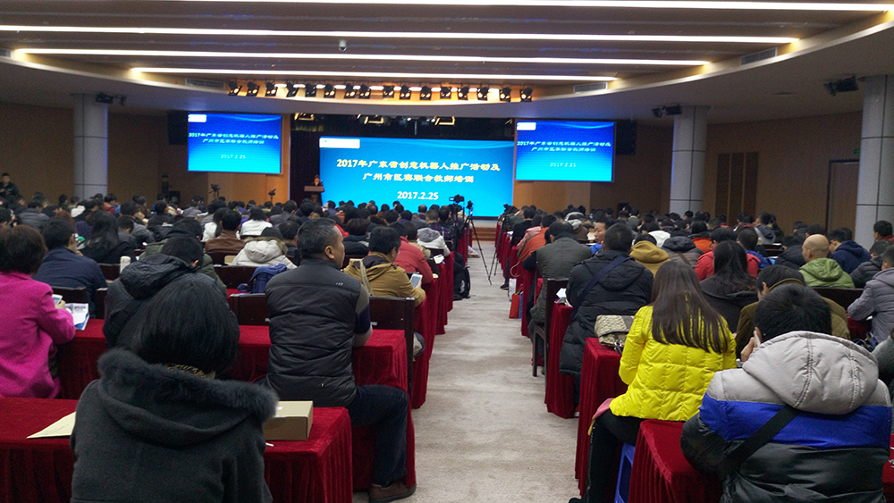 2017年2月24日至25日,由韶关市科技馆组队前往广东科学中心,参加广东省创意机器人推广活动教师培训。这次活动由市科技馆开发部部长陈晓霞及展览部部长贾璇带队,参加单位有我市(县、区)共21所学校28名骨干教师。老师们学习了声控四足机器人的机械制作、电路安装等知识,在现场进行机器人拼装与展示比赛,并取得结业证书。培训结束后各学校教师将回校开展创意机器人教学活动,组织学生培训并参加今年的首届韶关市机器人大赛。
