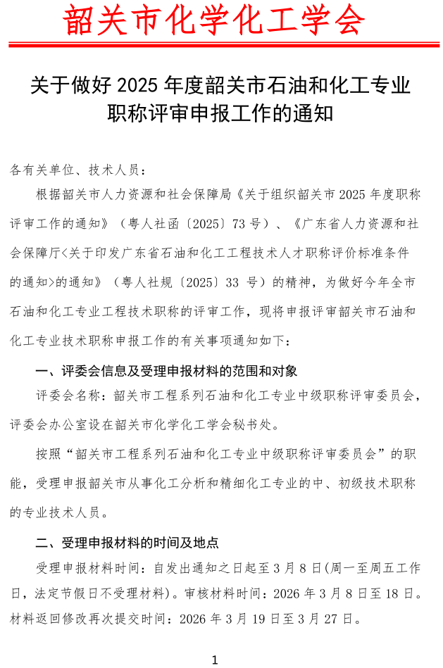关于做好2025年度韶关市石油和化工专业职称评审申报工作的通知
